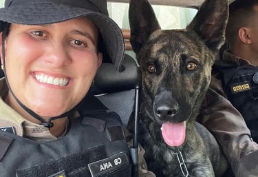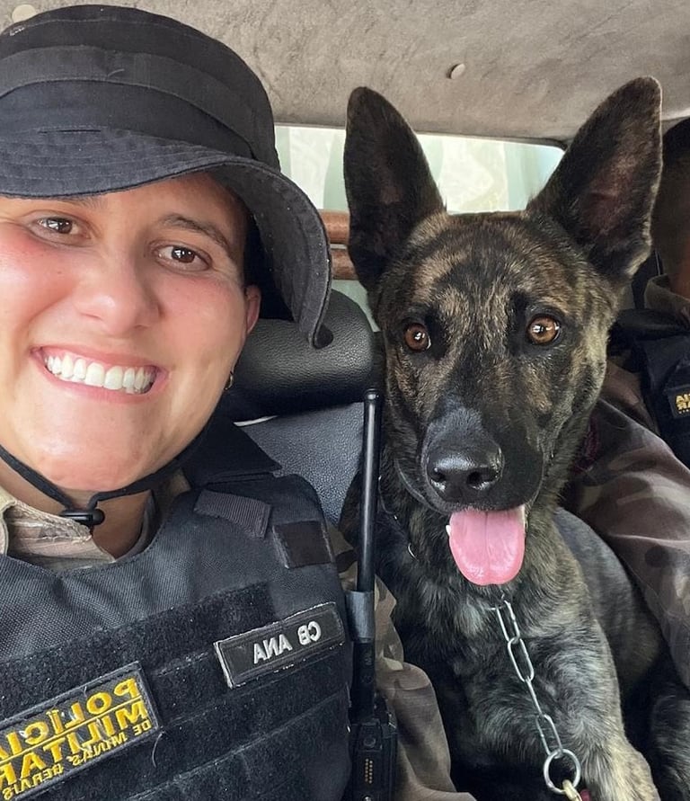 A Adestradora Ana Gabrielle atua na Polícia Militar desde 2009 e dedicou mais de sete anos à unidade de Rondas Ostensivas com Cães (ROCCA) da Polícia Militar de Minas Gerais. Lá, foi forjada em um ambiente onde precisão, disciplina e confiança absoluta entre homem e cão não eram apenas valores — eram requisitos diários para salvar vidas.